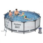 ასაწყობი აუზი BESTWAY Round Steel Pro არის სწრაფად და ადვილად დასამონტაჟებელი,ინსტალაციის მთელი პროცესი აუზის წყლით ავსებასთან ერთად იკავებს 30 წუთს,ტექნოლოგია SUPER-TOUGH აუზის კედლებს სამმაგ ძალას ანიჭებს,კედლები დამზადებულია მაღალხარისხოვანი,სქელი ვინილის და პოლიესტერის მასალისგან.აუზის Ultra Frame Pool ფორმის შენარჩუნებას ხელს უწყობს პოლიპროპილენის ლენტი,რომელიც გარს ერტყმის მთელ კონსტრუქციას.ასევე აუზის Metal Frame გამძლეობას განაპირობებს ფოლადის ჩარჩო,რომლის მეშვეობითც აუზი უძლებს დიდ დატვირთვას და მასში ერთდროულად შეუძლია იბანაოს რამოდენიმე ადამიანმა.აუზს აქვს წყლის მოსახერხებელი გადინება,რომელიც დაკავშირებულია ბაღის წყლის მილთან .აუზი დასადგმელად არ საჭიროებს ნიადაგის მომზადებას.